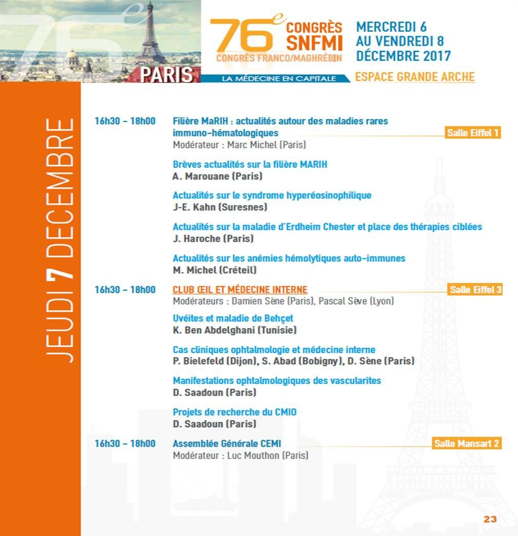 Dans l’attente de vous voir nombreux à la session du CMIO du congrès de la SNFMI du jeudi 07 décembre 2017 à 16h30 à Paris. Toutes les informations se trouvent sur cette page (cliquez ici). Ci-dessous, le programme de la session à télécharger.